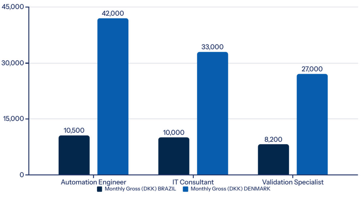 Total employment costs including mandatory benefits and taxes amount to approximately 1.5× gross salary. Even with these obligations, total compensation remains roughly 40% of Danish equivalent levels, creating significant margin advantages for service delivery.